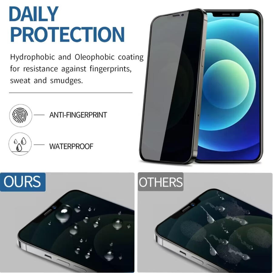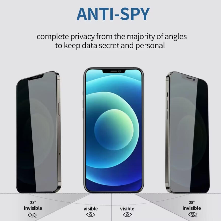 Anti-Spy screen protector is a type of hard plastic film that covers the screen, about 1mm-2mm thick. It can make people not able to see your screen by lower display angle of your phone. Best thing to protect your privacy near crowds!